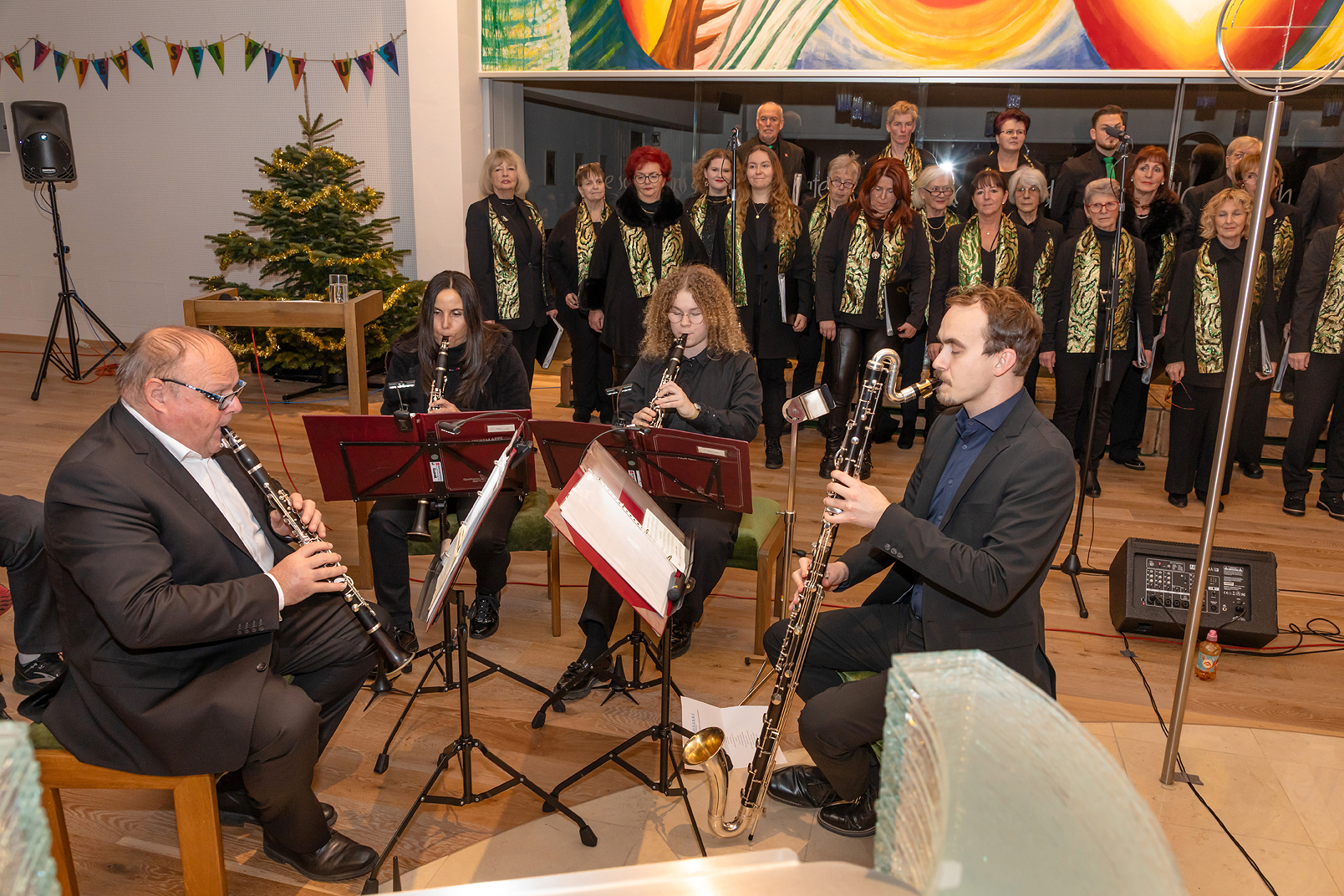 Durch das Programm führte Ilona Tröls-Holzweber mit Gedichten und Geschichten. Bereichert wurde das Konzert durch das Klarinettenquartett unter der Leitung von Robert Rosenthaler. Am Klavier begleitet Erwin Loskott. Für den zusätzlichen rhythmischen Schwung sorgte Christopher Holland. Als Solistin an der Querflöte brillierte Anna Wolfertsberger, selbst Mitglied des Chores.