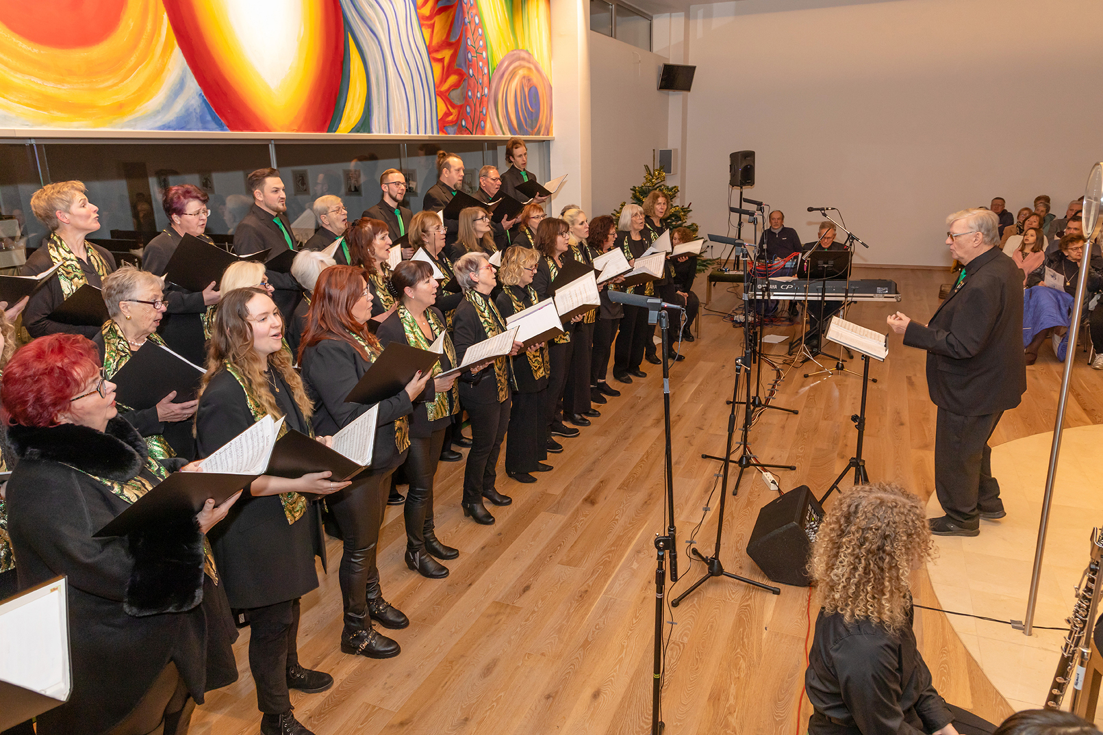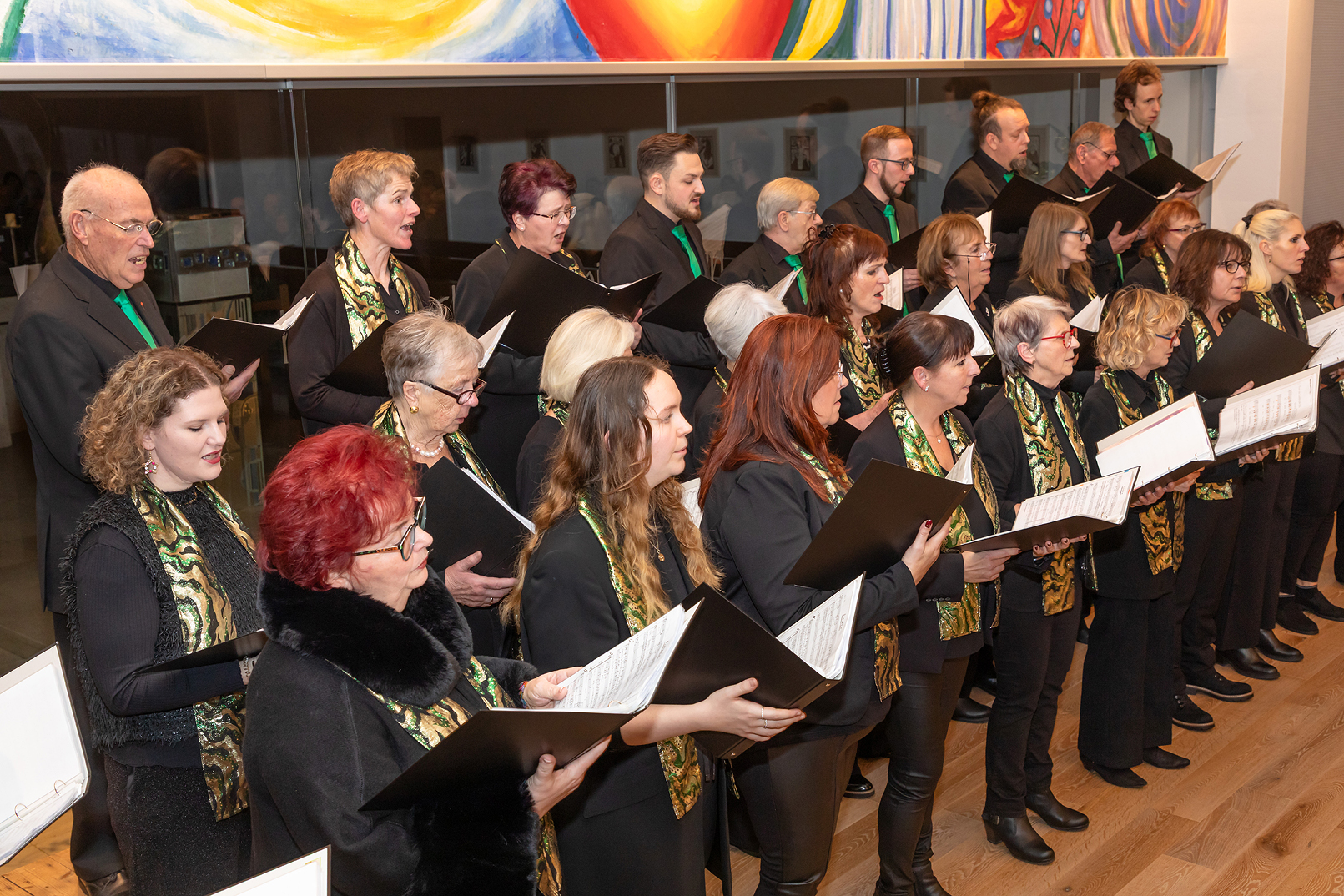 Unter der Leitung von Eduard Hofbauer stimmten die Sängerinnen und Sänger das sehr zahlreich erschienene Publikum auf das bevorstehende Weihnachtsfest bestens ein. Es wartete ein vielfältiges Programm auf die Gäste, so wurden besinnliche Volksweisen, beschwingte Lieder zur Weihnachtszeit und auch traditionelle Adventlieder dargeboten. Stimmungsvoll hat auch das choreigene Vokalensemble Vocaleta unter der Leitung von Charlotte Hofbauer beim Konzert mitgewirkt.